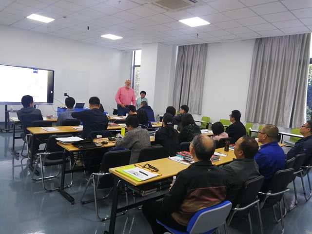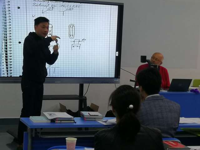 4月16-19日,Elmar Stockhausen 教授在我校开展了以“德国双元制职业教育考官培训”为主题的培训。我校作为承办机构,除了本校的机电科教师参加培训外,还迎来了上海电子工业学校、上海大众工业学校、柳州职业技术学院多位教师共同学习。