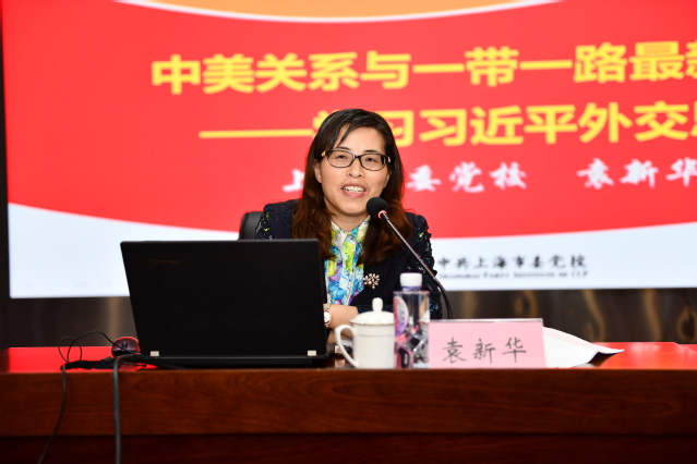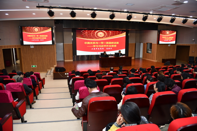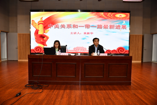 报告会上,袁新华以“中美关系和‘一带一路’最近进展”为主题,联系当前错综复杂的国际形势,围绕新时代中国特色大国外交、中美关系、“一带一路”三个方面,运用大量生动案例和详实数据,深刻阐述了习近平新时代中国特色社会主义思想的时代背景和实践基础,科学内涵和核心要义,历史地位和理论贡献。