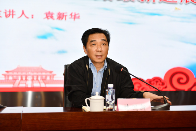 为深入学习贯彻习近平新时代中国特色社会主义思想,4月26日,校党委邀请中共上海市委党校、上海行政学院资深副教授袁新华来校作报告。报告会由校党委书记林国新主持。