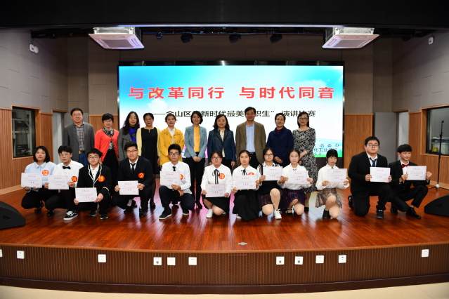选手们紧紧围绕“与改革同行,与时代同音”的演讲主题,从一名中职生的视角出发,或追忆自己进入中职前后的心路历程与重新定位,或畅谈时代发展带来的生活、学习的便捷,或表达自己对新时代偶像——“大国工匠”们的崇拜与敬佩……在举手投足之间,在声情并茂之中,选手们一段段真挚的话语,一份份饱满的情绪,一个个得体的动作,不仅赢得了现场热烈的掌声,更让大家看到了新时代中职生的努力、自信与追求!无论是评委张雅茹老师细致到位的精彩点评,还是市语测中心王静怡主任的高度肯定,都印证了这一点。