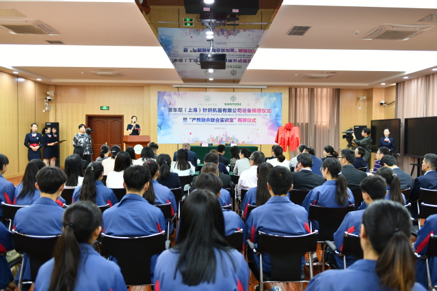 5月11日,为了进一步丰富校企合作内涵,提升职业学校教育与职业培训,实现双方共赢发展,学校与圣东尼公司在多功能厅联合举行圣东尼(上海)针织机器有限公司设备捐赠暨“产教融合联合实训室”揭牌仪式。金山区教育局副局长吴颖,圣东尼首席执行官Gianpietro Belotti先生,学校校长高炬、党委书记林国新等校领导出席此次签约仪式。