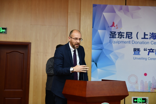 高炬在致辞中介绍了学校从坚持产教融合、打造“八共合一”的校企合作发展共同体,到创新推进专业国际化建设、构建出具有国际一流水准的本土化的双元人才培养模式、形成“政、行、企、校”四位一体的职教办学新机制等诸多办学特色;回顾了校企双方从共建订单班、设立专项奖学金、教师下厂实践等,到共建产教融合实训室、深入推动人才双元培养的整个历程;希望师生以此次校企共建“产教融合联合实训室”为新起点,不断深化机电专业的校企合作,切实提升专业国际化办学,夯实人才培养质量。Gianpietro Belotti先生高度评价学校高水准的本土化人才双元培养工作;充分肯定过去三年以来学校与圣东尼公司在深化产教融合上的有益探索;期待在圣东尼公司成立一百周年之际,双方合作更上一层楼,开启工业4.0背景下高技能人才培养的新篇章,推动校企双方的共赢发展。