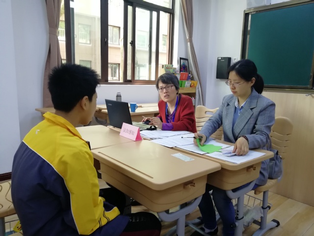 面试正式开始,经贸科科长曹俊和殷洁老师做好最后把关工作,确保本次特教面试工作如期顺利开展。