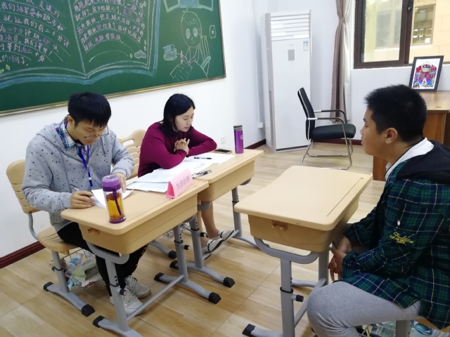 上午8:30,参加面试的学生们都按时到达,进行签到,并填写家长信息表和学生信息表,志愿者同学给面试的学生发放面试登记单,殷老师首先与参加面试的学生和陪同的家长进行了整体交流,对于面试流程和学生面试所需的安静环境做了简单说明,得到家长的支持和配合。