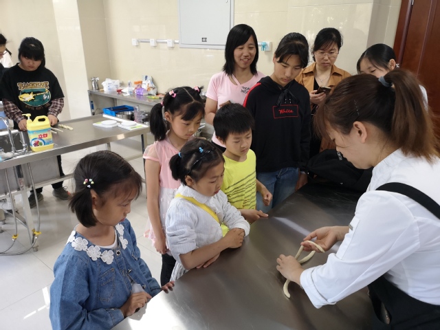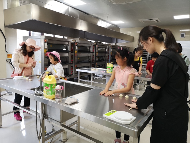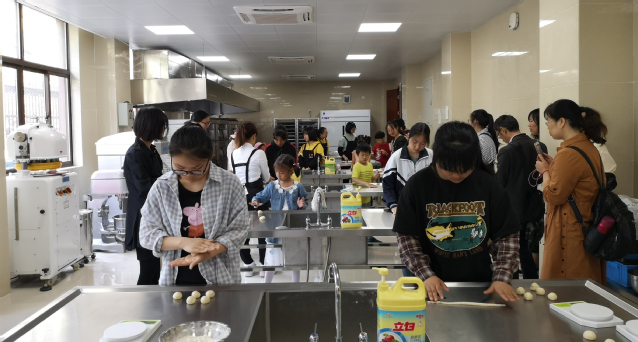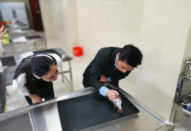 连续两天,同样处于底楼的烘焙实训室总是传来阵阵香气。西点烘焙体验项目作为今年职业体验的新项目,也受到了不少体验者的青睐,项目负责教师江军花、盛怡雯分别安排了巧克力曲奇和辫子面包的制作,让体验者觉得,原来面包房买到的饼干和面包,零基础也能搞定。面点师职业是创意与技术的结合。