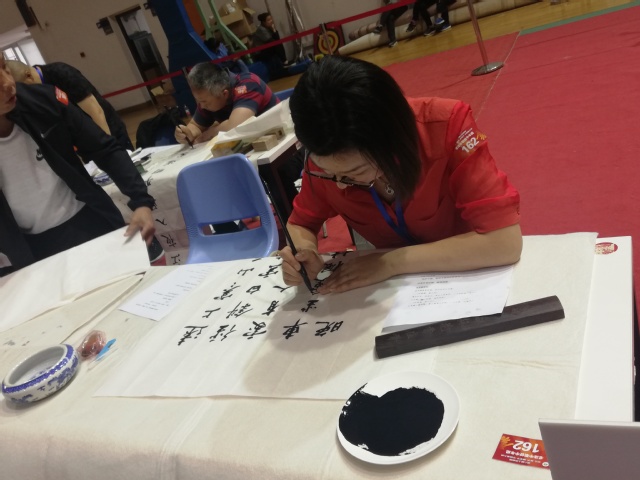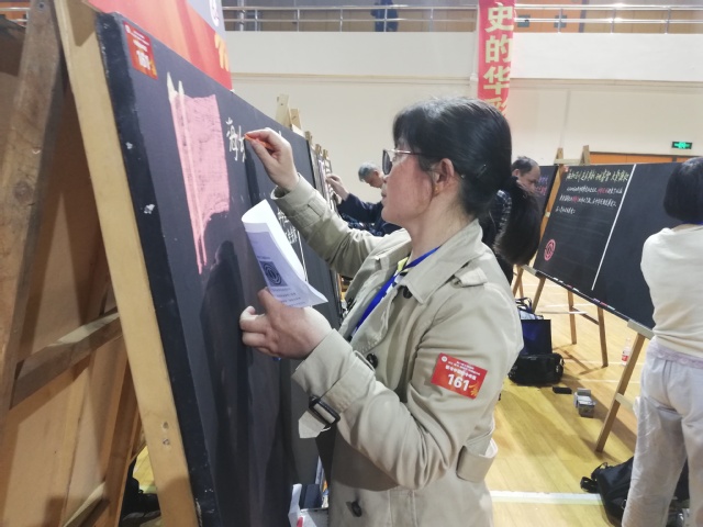 随后,参赛选手进入创作会场,一进入会场,便感觉到浓厚的艺术气息,空气中弥漫着淡淡的墨香,让人精神为之一振。比赛过程中,参赛选手不分年龄,不分性别,各自施展才华。有精神抖擞造诣颇深的老艺术家,也有风华正茂朝气蓬勃的年轻教师,大家一边聆听规则,一边精心准备,蓄势待发,场面壮观。