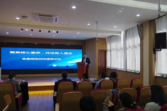 四校的八位优秀班主任老师围绕主题做精彩汇报。我校周倩、陈文博两位老师分别做《以真心换真情——构建和谐的师生关系》、《用知识引出兴趣,用兴趣点燃未来》的主题发言。在新的教育形式下,班主任老师在德育工作实践的基础上,积极探究如何通过创设班级文化来培养学生的核心素养,让学生逐步形成适应个人终身发展和社会发展需要的必备品格和能力。本次论坛采用班主任论文经验交流、典型案例分析的形式,德育经验具体,育人案例感人。通过本次论坛活动强调班主任老师能将养成教育融入到每一个细小的教育环节,在潜移默化中实现班级文化和学生核心素养的共同提高与升华,从而推动学校德育工作的顺利开展。