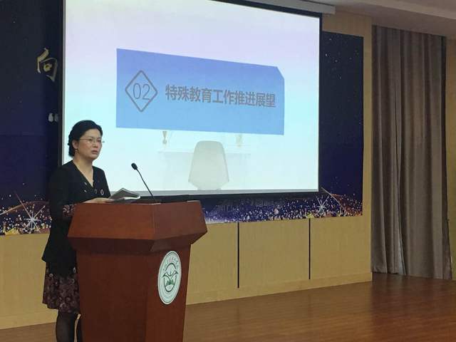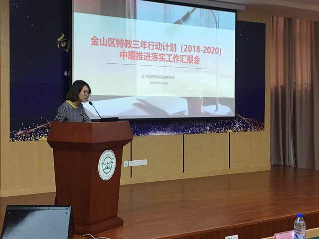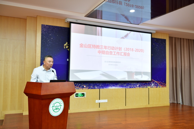5月30日下午13:30,金山区特殊教育三年行动计划(2018-2020)中期推进工作汇报会在我校如期召开。金山区教育局副局长盛明秀、区特教负责人徐忆遵、特殊教育指导中心副主任张朝晖、新闻中心主任李代友、督导室中学督导王建平、成职教科路雁雁、校产基建设备管理中心副主任赵子力、上海石化工业学校经贸科科长曹俊等领导及相关幼儿园、各中小学、石化工业学校的特教分管领导共60余人出席本次会议。会议旨在进一步推进我区特教三年行动计划的有效落实,聚焦问题,分享交流,同策同力。