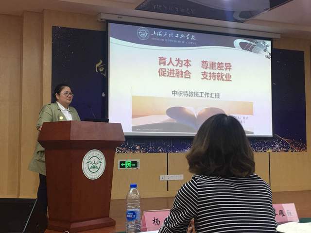 我校经贸科特教负责人殷洁老师针对我区我校自2017年开始的特殊中等职业教育教学工作进行了实践性工作总结汇报。汇报内容详实、具体,从中职特教班入学面试工作、特殊资源教室建设及规范化制度管理、无障碍环境建设、特殊中等职业教育师资培训、特教专业整体规划建设、特殊职业教育多样化课程建设、专业实训建设、个别化教育开展情况、普特融合活动推广、特殊学生学习活动集锦、学生创意作品展示等方面进行了综合汇报。