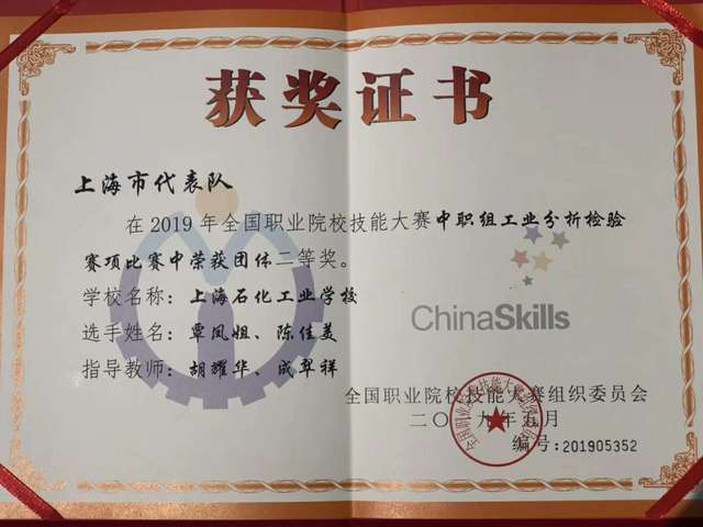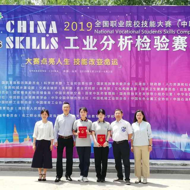 2019年5月30日-6月2日,全国职业院校技能大赛“工业分析检验”项目在山东省潍坊市寿光市职业教育中心举行,全国共有56个中职队伍参赛。我校160应用化工班覃凤姐、171巴斯夫班陈佳美两位同学经过三天四场比赛的激烈角逐,沉着应战,凭借过硬的专业技能和良好的心理素质,荣获团体二等奖。