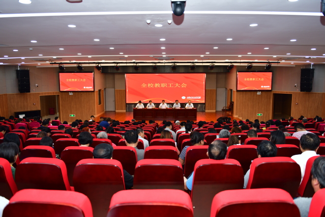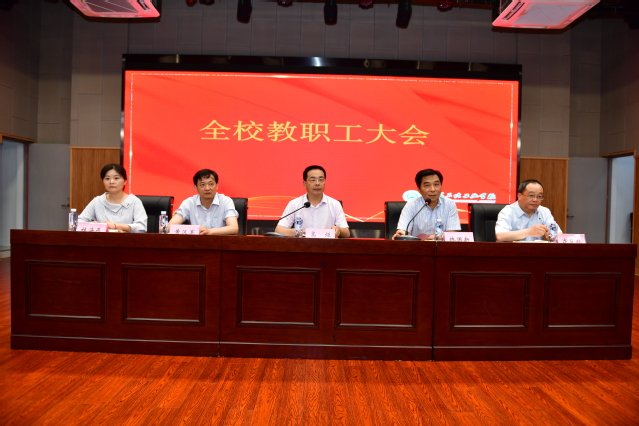 6月29日,我校在B区会议中心召开全校教职工大会,校长高炬对学校2018-2019学年第二学期工作进行全面总结。会议由党委书记林国新主持。