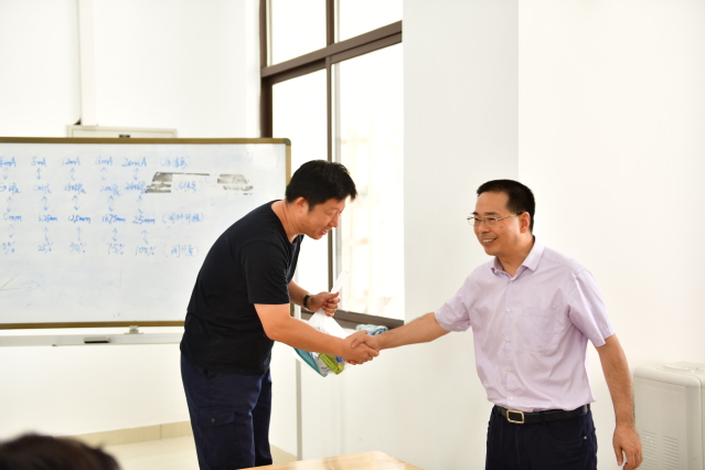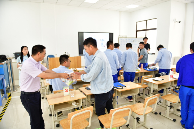 离开南区综合楼,校领导一行来到化工综合实训大楼。2019年中国技能大赛——第十一届全国石油和化工行业职业技能竞赛的各项筹备与备赛准备工作正有序进行。校领导叮嘱化工科要按照时间节点,做好赛事的各项准备,优化好化工实训大楼的实训建设;勉励参赛师生加强训练,力争比赛中赛出自信、赛出风格并取得理想成绩。在巴斯夫夏训营,校领导与主讲教师与培训学员亲切交谈,关心询问他们的学习与生活情况,并叮嘱现场人员一定要做好组织与保障,确保员工培训的顺利进行。