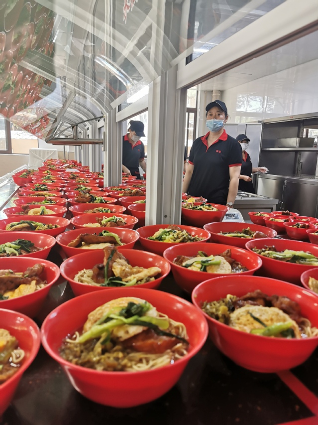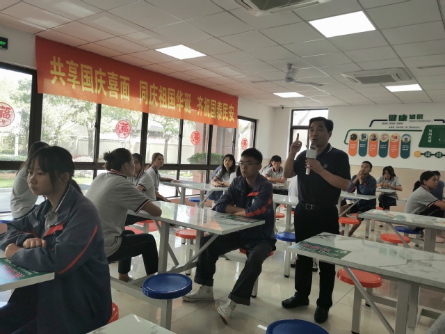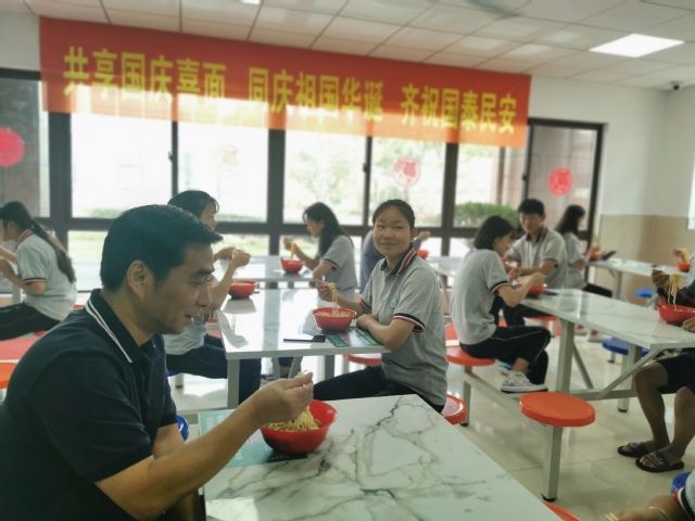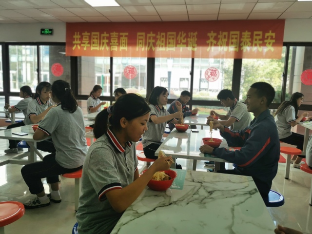 师生们在欢声笑语中吃着幸福的国庆面,祝福祖国繁荣昌盛,国泰民安。