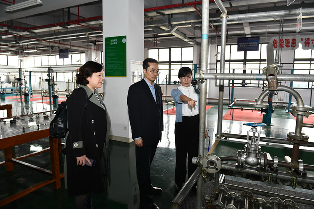 最后,部分与会嘉宾一起在学校校办主任的陪同下,参观了学校的化工实训大楼,了解学校技能训练的设备设施,增强对上海市安全生产资格考试(危险化学品类)考点的深入了解,为接下来的合作做好铺垫工作。