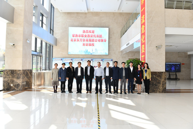 10月23日,常熟市教育局副局长赵明华、常熟经济技术开发区组织人事劳动局局长陈正东、常熟经济技术开发区安环局科长汤利明、常熟市滨江职业技术学校校长徐丽娟等一行5人,北京东方仿真集团公司总经理夏迎春等一行3人来访我校,校长高炬热情接待了来宾。