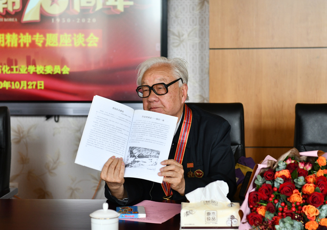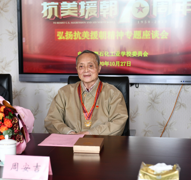 今年是中国人民志愿军抗美援朝出国作战70周年,举国上下都在隆重开展纪念活动,校党委积极行动起来。10月27日,校党委组织开展弘扬抗美援朝精神专题座谈会。参加过抗美援朝战争的周安吉、孙世安、高广汉三位老战士受邀参加。校党政班子、相关部门负责人及学生代表参加座谈会。座谈会由校党委委员孙曙光主持。