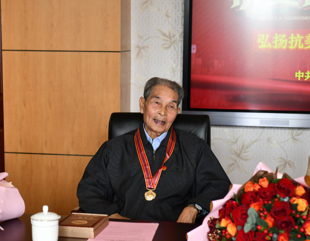“当年我在学校读书,参军名单中没有我。后来我就一直找领导,毅然决然地报名参加抗美援朝战争……党的政治思想工作是强有力的,政治思想工作这一传家宝绝不能丢!”老战士高广汉声情并茂地介绍了七十年前参军的情况。