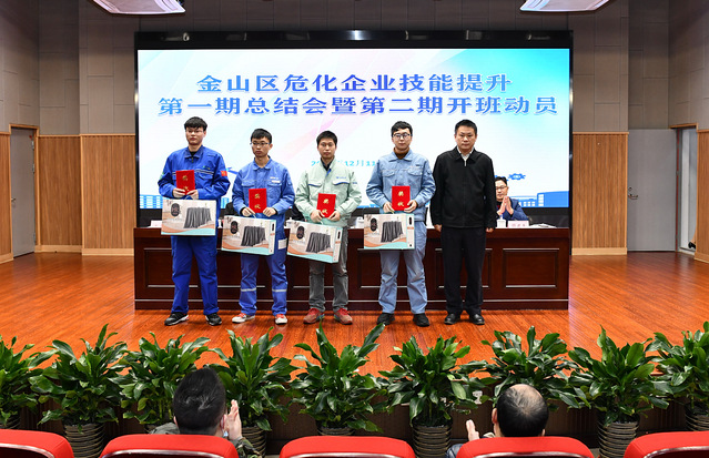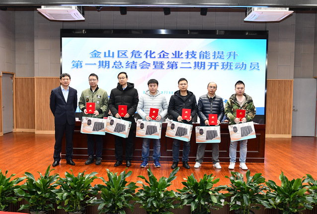 12月11日,金山区危化企业技能提升培训班第一期总结会暨第二期开班动员会在我校会议中心举行,金山区应急管理局副局长缪勇、上海石化工业学校副校长黄汉军等领导出席会议,全区44家危化企业相关负责人、第一期培训优秀学员、第二期培训学员参加了此次会议。会议由校办主任张海霞主持。