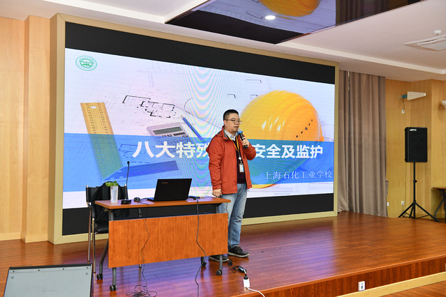 仪式结束后,学校化工科教师王辉为第二期学员开启了金山区危化企业安全技能培训班的第一课。
