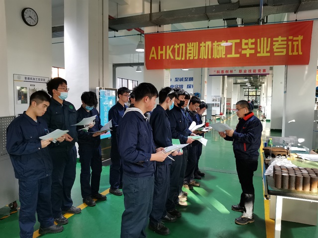 12月8日—11日,我校与上海汉钟精机股份有效公司合作培养的数控技术应用专业首届AHK国际班(181数控1班)的36名学员迎来了AHK切削机械工第1部分的考试。切削机械工毕业考试由分开实施的第1部分与第2部分组成,分别在第五和第七学期进行,此次第1部分考试在总成绩中有40%的权重。经过两年多的学习与训练,36名考生准备就绪。