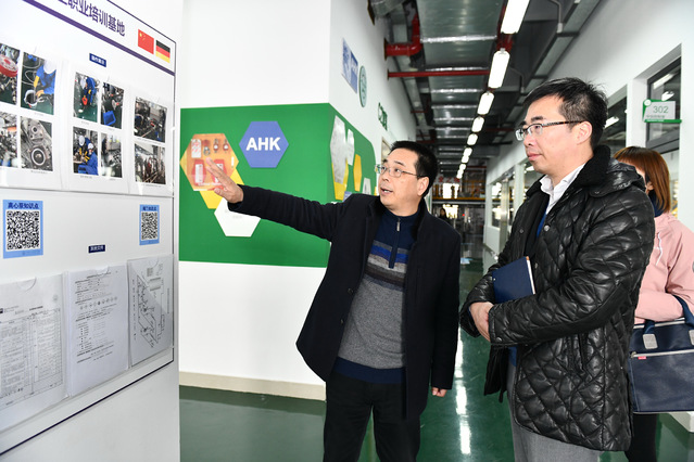 孙建国一行首先参观了学校的校史馆、化工与人类科普馆、跨企业培训中心和化工实训大楼,肯定学校先进实训建设与丰富管理经验,表达进一步加深合作的期待。