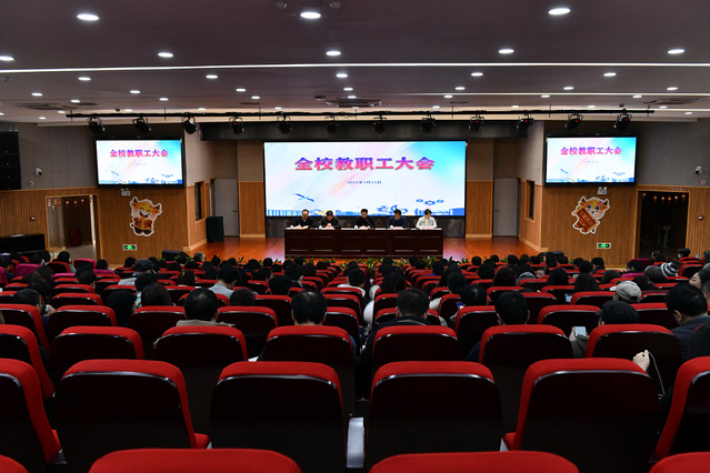 1月15日上午,我校召开全体教职工会议。校长高炬、党委书记林国新、副校长黄汉军、党委副书记杜海燕、工会主席迮育彪等出席大会,会议由林国新主持,全校教职工参加会议。