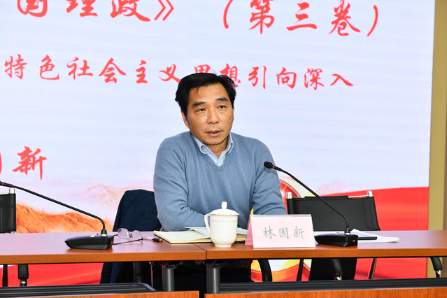 在本次学习班上,为把学习贯彻习近平新时代中国特色社会主义思想引向深入,林国新为学校全体中层及以上干部上了一堂“学好用好《习近平谈治国理政》第三卷”的专题党课,号召大家牢记初心使命,切实推动学校事业发展。