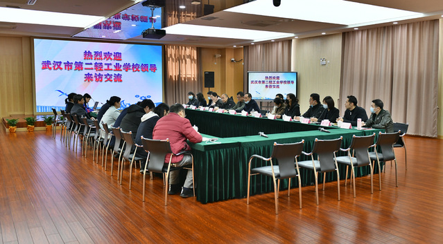 3月22日,武汉市第二轻工业学校校长邓国平一行12人来我校考察交流,校长高炬、副校长黄汉军、党委副书记杜海燕热情接待了邓国平一行,并在北区多功能厅进行座谈。