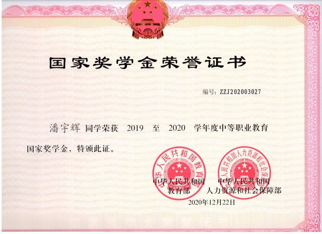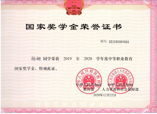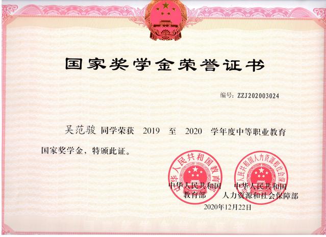 中职国家奖学金由中央财政出资设立,用于奖励中等职业学校全日制在校生中特别优秀的学生。希望更多的学生向身边的榜样看齐,继续带着梦想、自信、责任和热情前行。
