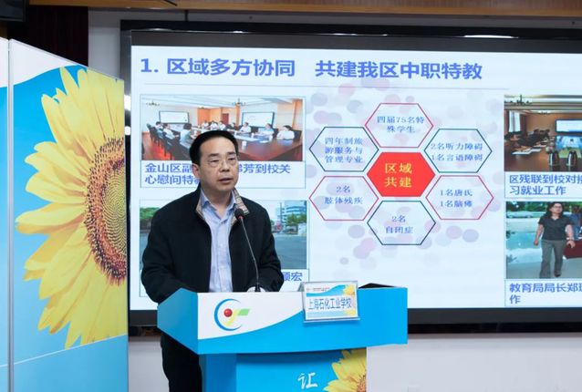学校高炬校长在本次评审会议上代表我校做了《普特融合 助特入常 社会融入---支持特殊青少年个性成长与多元发展》的主题汇报。学校中职特教工作自2017年开始至今,经历从无到有,从有到优,区域同心,协力创建中职特教“优质教育教学资源”,帮助特殊青少年迈入常态化学习生活,引领特殊青少年实现岗位多元适应。高炬在评审汇报中明确提出我校中职特教“五大无障碍主题环境”的创设,特殊中等职业教育多样化课程体系三大特色化课程模块的创建,基于多样化课程“普特共享资源教室”的创新开发,以及 “中职特教特色化一生一档”等多项专项工作成果。工作扎实创新,立足特殊学生学情,助力完善区域教育体系,多元并举。高炬的汇报得到了与会专家和领导的一致好评和肯定。