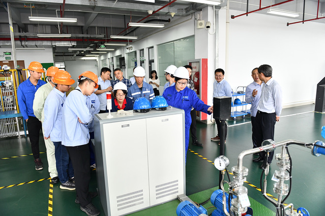 盛尉一行参观了学校跨企业培训中心、上海市安全技能综合实训示范基地和AHK中德化工职业培训基地,实地查看学生实训学习及企业员工安全培训情况,了解“上海市安全技能综合实训示范基地”和“上海市安全生产资格考试(危险化学品类)考点”建设和运行情况。