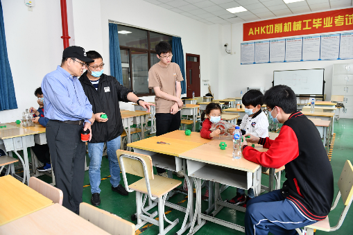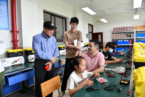 装备中心专家还走访了各个项目,就项目的设计、实施、安全、学生的体验反馈等方面与项目负责教师和来体验的家长进行了交流互动。专家对我校2021年职业体验活动给出较高的评价,肯定了此次职业体验日的组织工作和各项目的设计,同时也就一些具体问题给出了建议,相信在专家的指导下,职业体验日活动会日臻完善。