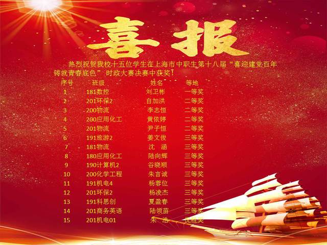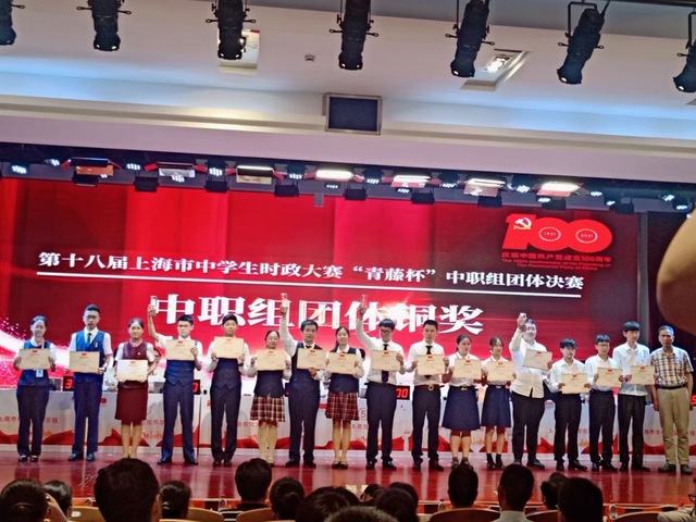 6月3日上海市中职生“喜迎建党百年 铸就青春底色”第十八届时政大赛八强团体决赛在工商信息学校举行。我校选手在总决赛中获得第五名,喜获团体铜奖。