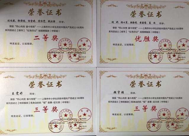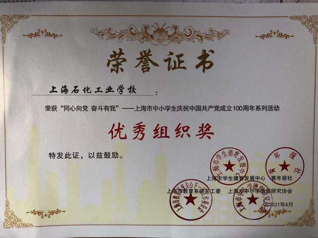 6月18日下午上海市中职德育论坛暨“同心向党奋斗有我”主题活动颁奖典礼在上海商贸旅游学校召开,我校学生处、团委教师和学生代表出席活动。我校获得本次活动优秀组织奖,冯楠老师获得优秀指导老师荣誉,二十位学生在主题活动中获奖。
