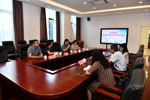 6月28日,广东省茂名职业技术学院副院长曾萍一行4人来访我校,研讨实训基地建设事宜。副校长黄汉军接待了来宾。