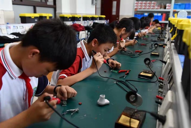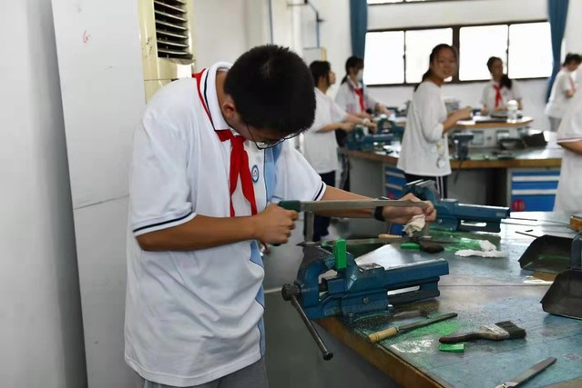 四天的体验活动包括我校化工、机电、经贸设计的18项体验项目,项目贴近实际生活,能让体验者在动手过程中体验到和本校不同的特色课程,在微生物镜检、化学趣味实验、精馏车间和化工VR仿真活动中,学生走入了实验室和化工生产环境中体验了一次化学化工人的乐趣;在电工和钳工制作项目中,他们走进了真实的车间,用到了真实的工具;在机器人编程项目中,他们把一条条指令变成了眼前能够运动的手臂;在危险品运输仿真操作中,他们体会到了现代物流的先进;在西式面点和茶文化板块他们亲手制作了让自己味蕾跳动起来的美食等等,十八个项目各有不同各有特色,但是目的只有一个就是让中学生们感受劳动的魅力,加深对职业的认知。