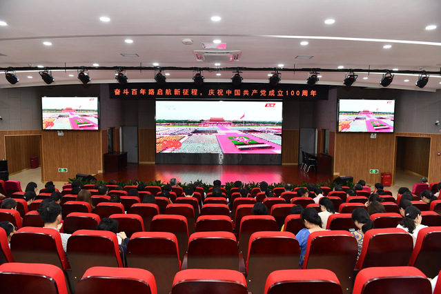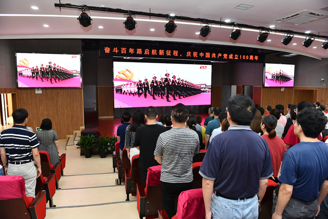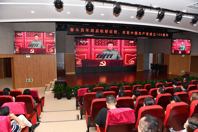 7月1日上午8时,庆祝中国共产党成立100周年大会在北京天安门广场隆重举行。中共中央总书记、国家主席、中央军委主席习近平发表重要讲话。校党委组织全体教职工在会议中心集中观看盛况,共庆中国共产党成立100周年。