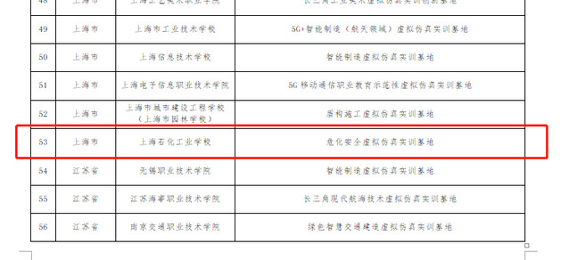 近日,教育部发布了职业教育示范性虚拟仿真实训基地培育项目公示名单,上海石化工业学校申报的“危化安全虚拟仿真实训基地”建设项目有幸成为上海市七个入选项目之一。