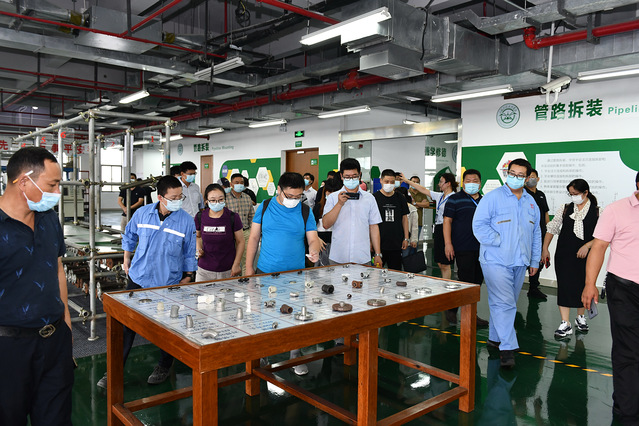 仪式开始前,与会领导与嘉宾还参观了学校跨企业培训中心、机电实训大楼和化工综合实训大楼。