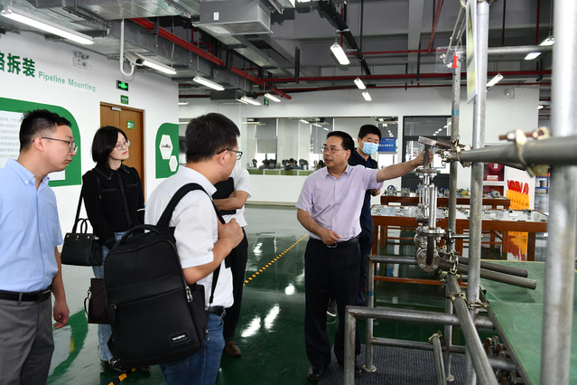 会前,任学良一行还参观了学校校史馆、跨企业培训中心、化工综合实训大楼等场所与实训设施,实地了解学校产教融合、校企合作的基本情况与管理特色。