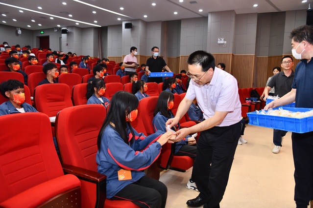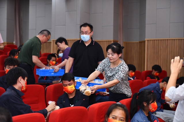 9月18日下午,我校校长高炬、党委书记林国新、副校长黄汉军、党委副书记杜海燕、工会主席迮育彪在B区报告厅慰问中秋留校的云南同学,为他们送去中秋月饼与节日的问候。