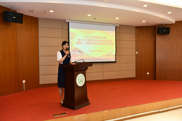 9月24日下午,我校第二十三期业余党校结业暨第二十四期业余党校开班仪式在化工实训大楼二楼会议室举行。校党委书记林国新、党委副书记杜海燕、各支部书记、团委书记出席仪式。仪式由党办主任李雅娟主持。