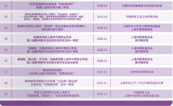 2020年我校所获荣誉称号统计