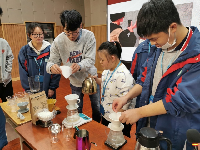 10月25日,为了使学校特殊学生拓宽职业视野,增长见识,促进学生对咖啡文化与制作技能的认知和兴趣,经贸特教中心特邀SCA世界精品咖啡协会金杯萃取技能认证高级咖啡师张在东,到校为特教班的同学们开设《手冲咖啡制作与品鉴》讲座,此次讲座受到了同学们的广泛好评。