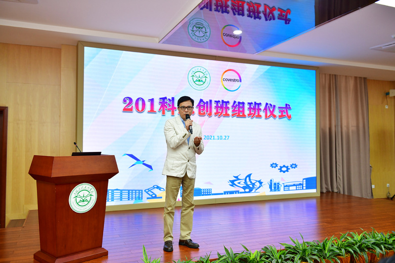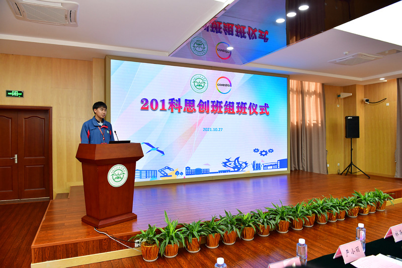仪式上,来自科思创公司的学校优秀校友还专门为同学们分享了工作中的经验和生活体会。201科思创班徐盛杰代表新一届学生承诺同学们定会不负众望,努力完善自身,为科思创做出贡献,为学校增光添彩。班主任杨晓艳作为教师代表发言,表示将和25名同学一起补短板、扬长处,用实际行动展现班级风采。