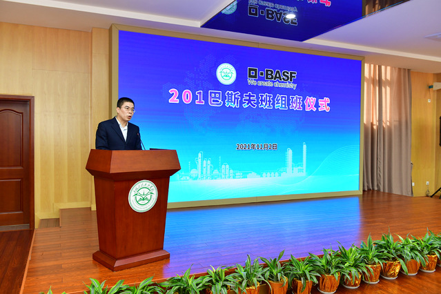 高炬在组班仪式上致欢迎辞。高炬指出,巴斯夫是世界闻名的化工巨头,是学校的重要合作伙伴,深化校企合作、产教融合,培养高质量技术技能人才是校企共同目标。希望新一届巴斯夫班的同学们珍惜机会、认真学习、刻苦训练,尽快了解企业文化,提升职业素养,为早日融入巴斯夫打下坚实基础。