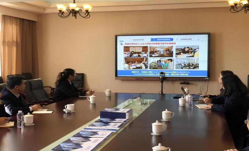 11月9日上午10点30,中心组教研活动第二部分——化工职业培训体系介绍,在石化工业学校办公楼4楼会议室继续开展。石化工业学校化工科科长严小丽介绍了我校目前取得的培训体系建设成果,我校历来注重校企合作,完善产教融合体系。严小丽指出我校经历了2002年到2021年20年的专业国际化发展历程,构建了AHK本土化化工类职业标准培训体系以及危化行业从业人员安全技能提升培训体系并且制定了系统的培训与考证标准。目前,我校已经取得了建成上海市安全技能综合实训示范基地以及成功申建了国家级危化安全虚拟仿真实训基地等优秀成果。