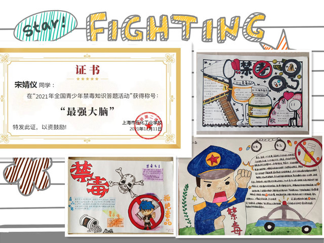 我校响应上海市禁毒办、上海市教委对在校学生开展毒品预防教育的号召,每年秋季认真组织全校学生参加“健康人生,绿色无毒”主题禁毒知识学习、宣传作品征集活动,通过禁毒主题班会、国旗下的演讲等活动加强对学生的毒品预防教育。