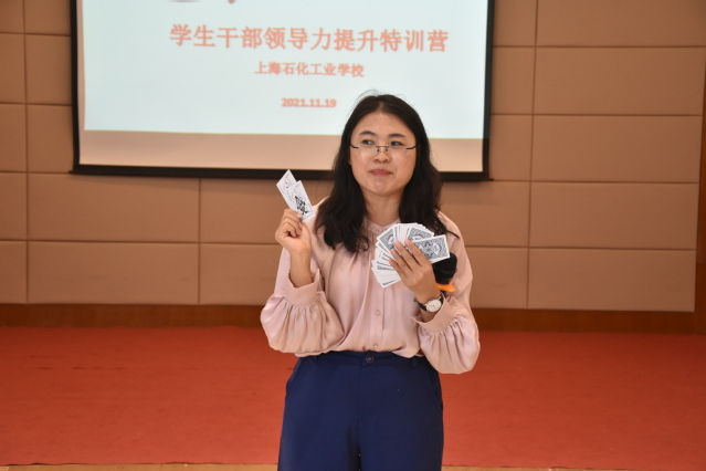 11月19、20日,上海石化工业学校的优秀学生干部在北区经贸楼四楼和南区化工楼实训楼二楼参加了以“学生干部领导力提升”为主题的实战特训营。本次培训由深圳鹏威教育管理咨询有限公司资深讲师邓卓霞担任主讲,两天的培训旨在有效提升我校学生干部的综合能力。