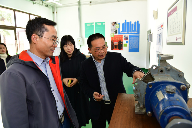 在高炬的陪同下,肖剑一行参观了学校跨企业培训中心、数控开放实训中心和化工综合实训大楼,详细了解实训室设备建设及运行情况,进一步交流培训合作事宜。